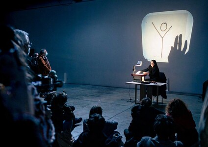 Entre slogans, poèmes et éclats de rire, Aude Denis et la compagnie “Par-dessus bord” offrent une pseudo conférence explosée, explosive et exploratoire des écrits féministes des années 1970.